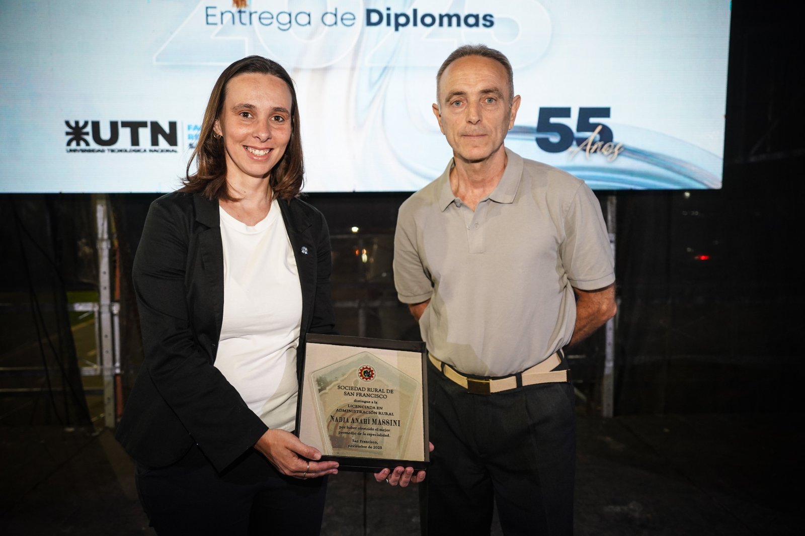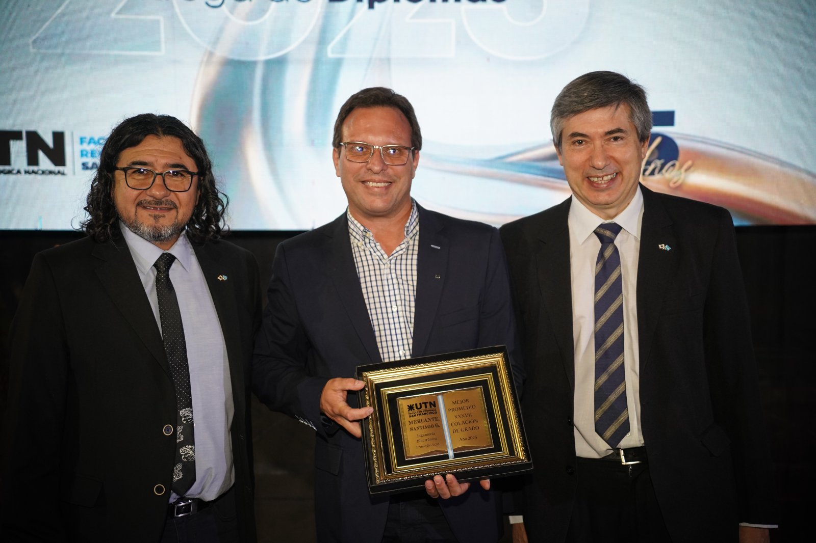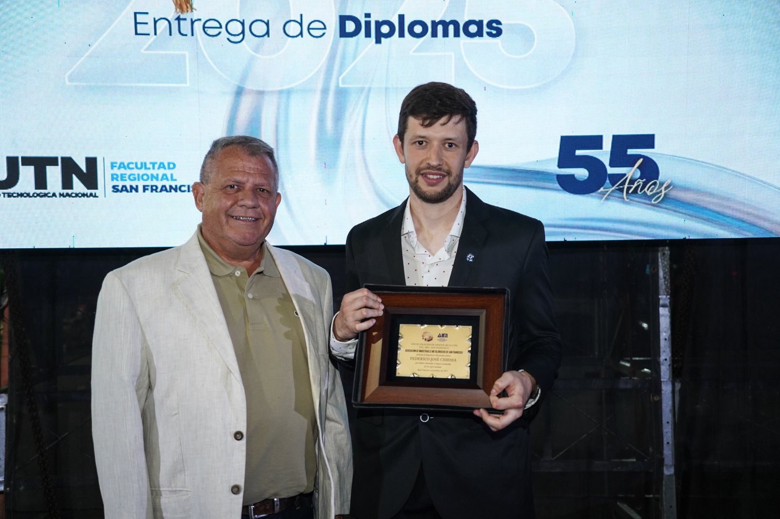 Por su parte, la Asociación de Industriales Metalúrgicos, entregó una distinción al mejor promedio de la Especialidad Ing. Electromecánica, Ing, Federico José Chiessa. Y el Colegio de Ingenieros Especialistas de Córdoba, delegación San Francisco, entregó un reconocimiento al mejor promedio de las Ingenierías colegiadas, que en este caso fue pare el Ing. Santiago Mercante. Y la comisión directiva de la Sociedad Rural de San Francisco, distinguió al mejor promedio de la Licenciatura en Administración Rural, Lic. Nadia Anahí Massini.