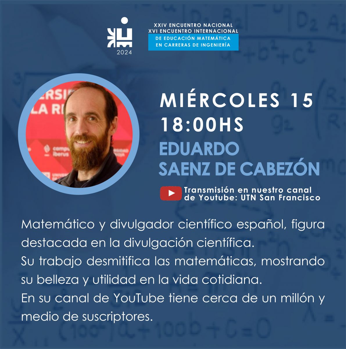 Eduardo Sáenz de Cabezón, matemático y divulgador científico español, es reconocido por su capacidad para hacer las matemáticas accesibles y atractivas. Nacido en 1972, su estilo ameno y cercano en la comunicación de conceptos complejos lo ha convertido en una figura destacada en la divulgación científica. Su trabajo desmitifica las matemáticas, mostrando su belleza y utilidad en la vida cotidiana, y ha participado en proyectos y conferencias que aumentan su visibilidad y aprecio en la sociedad. Sus esfuerzos promueven el pensamiento crítico y la importancia de las matemáticas en la resolución de problemas y la comprensión del mundo.