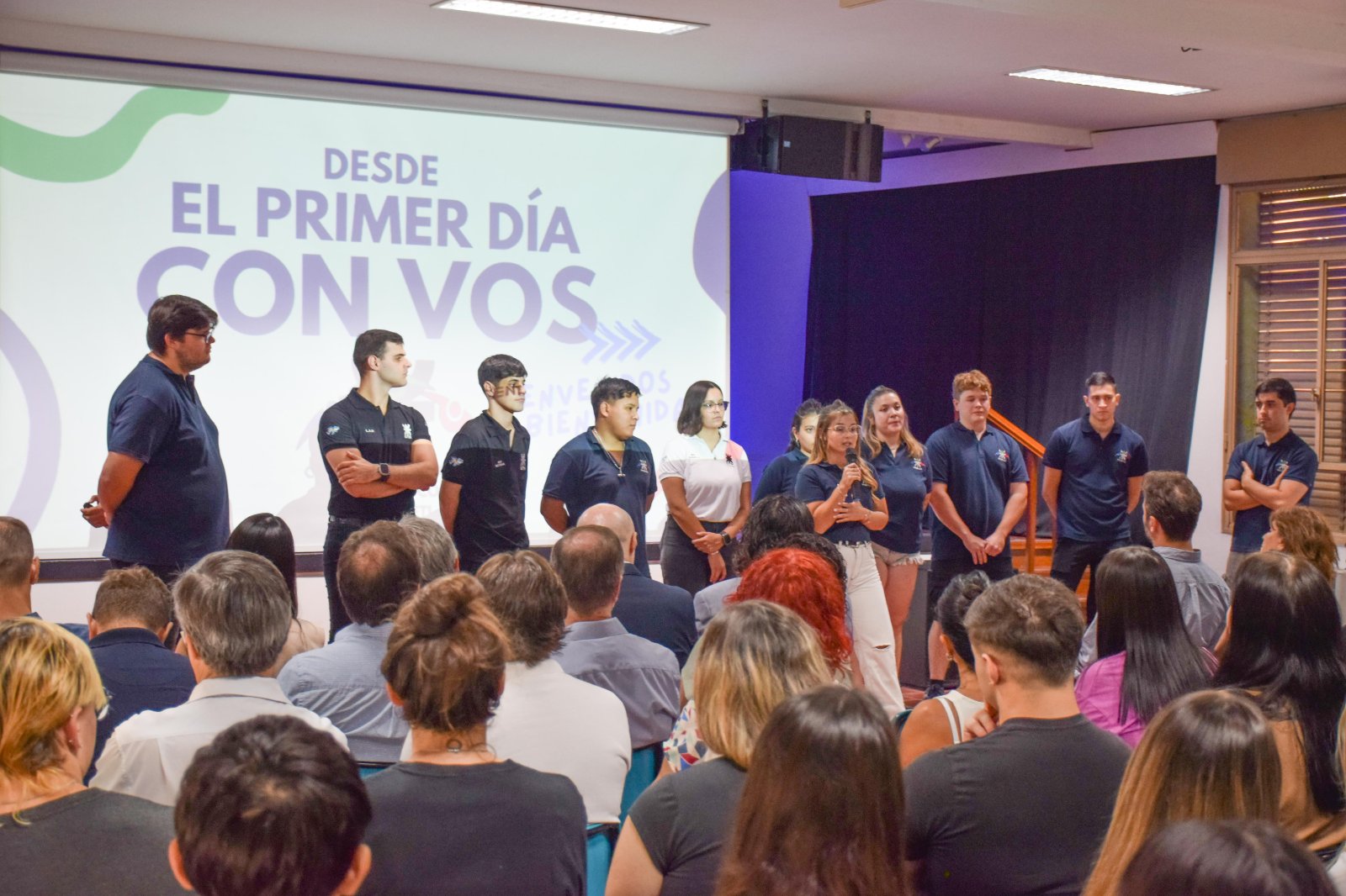 El resto de las autoridades presentes coincidieron en remarcar la importancia de la constancia, la construcción progresiva de hábitos de estudio y el acompañamiento entre pares, además de resaltar los dispositivos de tutorías, becas, pasantías, actividades deportivas y propuestas de extensión que la Facultad pone a disposición para acompañar especialmente el primer año de cursado.