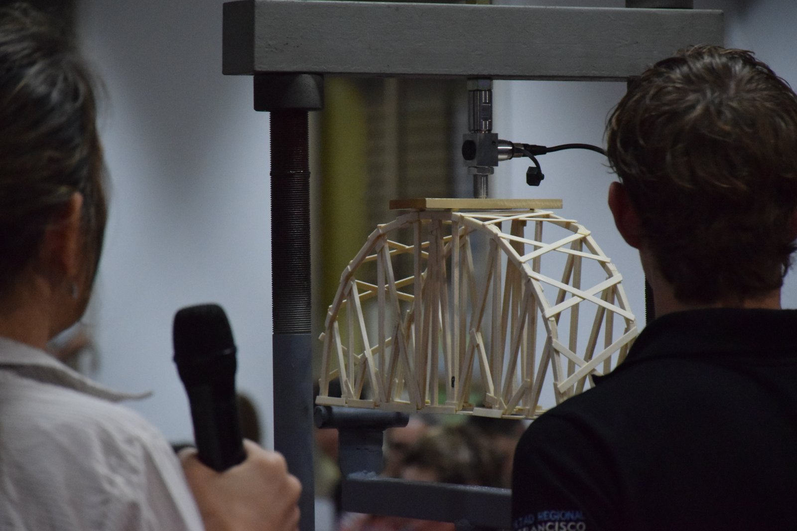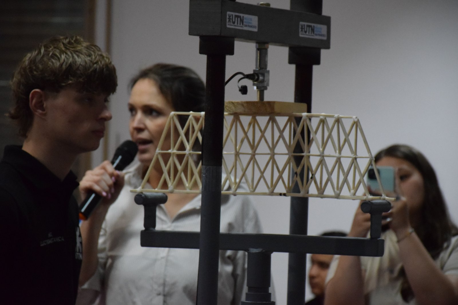 Durante la jornada, se vivió un ambiente de entusiasmo y colaboración entre participantes, docentes y público en general, quienes siguieron con atención cada una de las pruebas de carga. Vale aclarar que los puentes debían cumplir con estrictas condiciones, entre ellas, pesar menos de 500 gramos y romperse al llegar a una carga de 50 kilos.