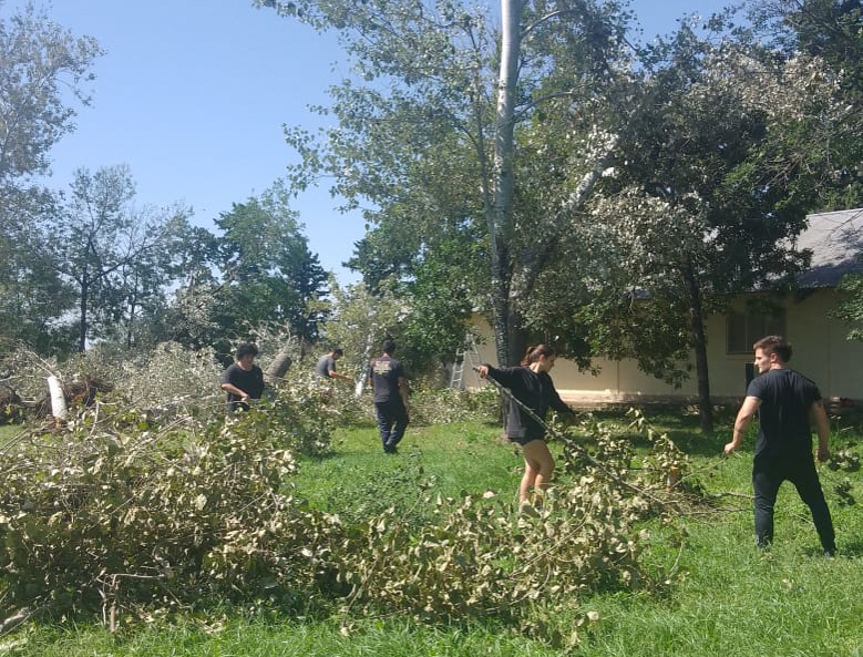 Personal nodocente, docentes, estudiantes, graduados, autoridades e investigadores se sumaron a la tarea que desplegaron desde el área de mantenimiento, con los Bomberos Voluntarios, junto a trabajadores de la empresa LC Construcciones, para retirar los árboles caídos, juntar ramas, reparar techos y reacomodar cada espacio afectado por el fenómeno climático.