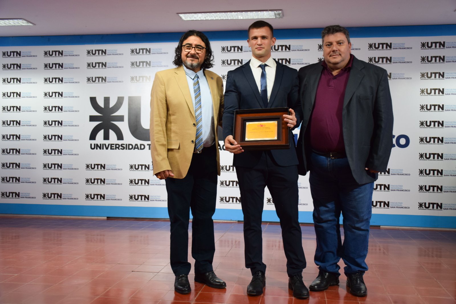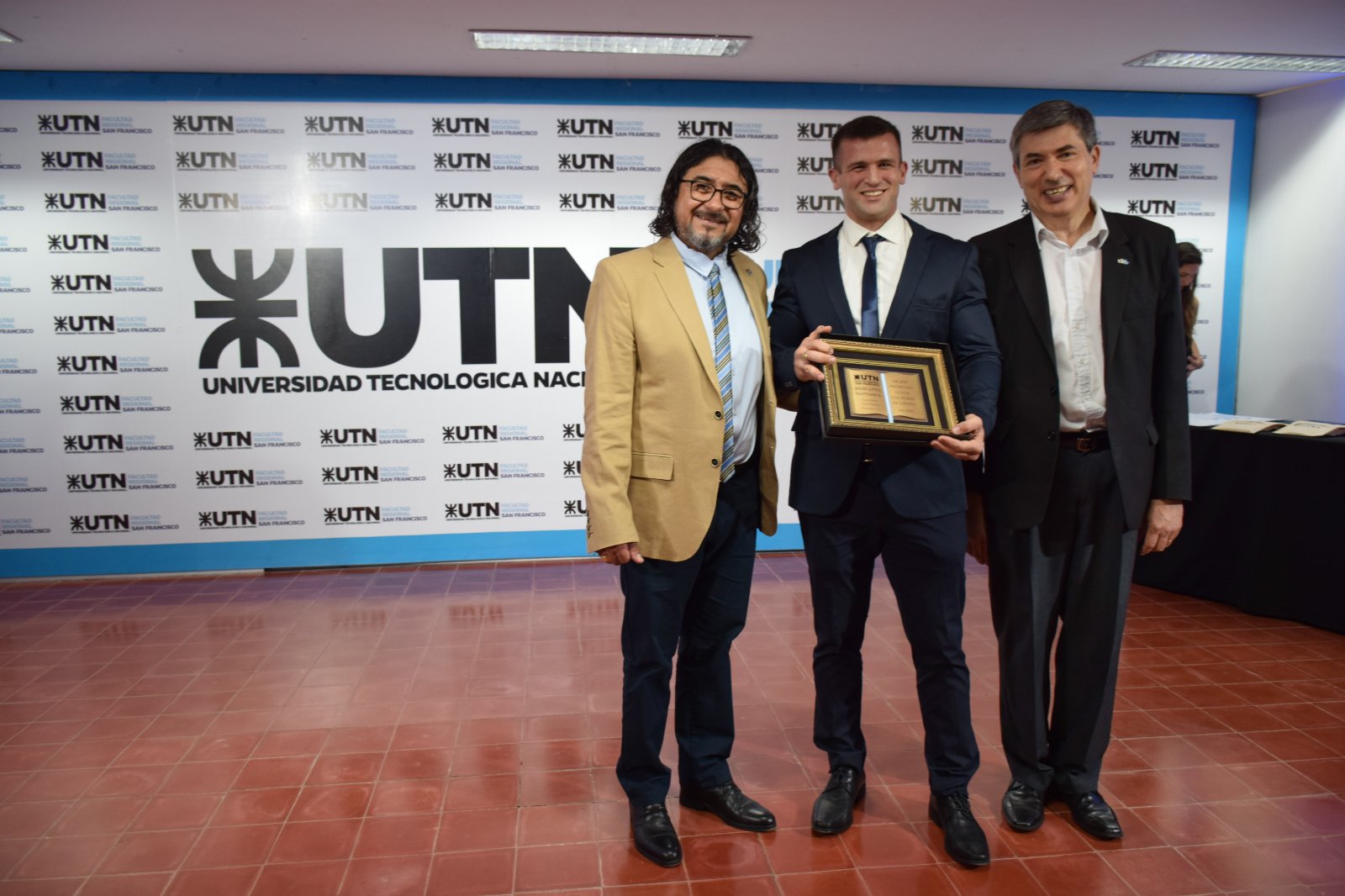 Durante la ceremonia, también se entregaron distinciones a estudiantes destacados por su desempeño académico. El Ing. Santiago Gastón Mercante recibió el reconocimiento al mejor promedio de la 37° Colación de Grado con 9.58. También fueron homenajeados la Ing. Lucrecia Martínez, mejor promedio de Ingeniería Química a nivel nacional, y el Ing. Federico José Chiessa, premiado por el COPIME en la especialidad Electromecánica.