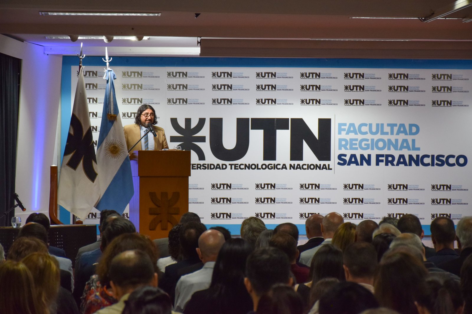 El acto comenzó con la bienvenida a docentes, nodocentes, estudiantes, graduados, autoridades y público en general. Estaban presentes representantes de numerosas instituciones de la ciudad y la región y Decanos de Facultades Regionales de UTN.