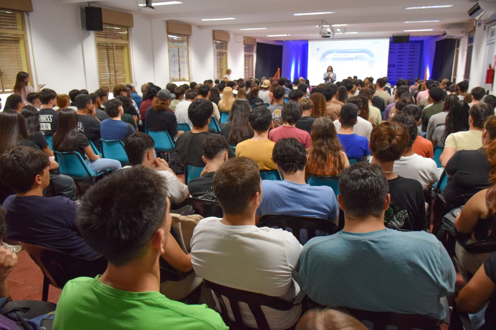 El resto de las autoridades presentes coincidieron en remarcar la importancia de la constancia, la construcción progresiva de hábitos de estudio y el acompañamiento entre pares, además de resaltar los dispositivos de tutorías, becas, pasantías, actividades deportivas y propuestas de extensión que la Facultad pone a disposición para acompañar especialmente el primer año de cursado.
