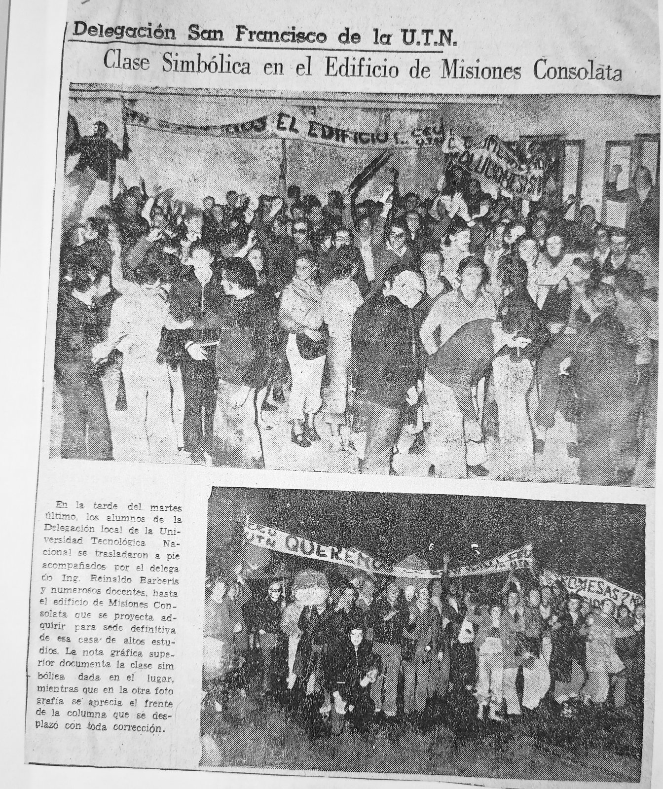 Esa necesidad de un edificio propio fue el principal reclamo de los estudiantes en aquellos años, a lo que se sumaban las modificaciones de planes de estudio, las elecciones de autoridades institucionales, entre otros temas. Y ahí estaba Oscar junto a un grupo de estudiantes, organizando reuniones con autoridades, movilizaciones, coordinando el contacto directo con el resto de los estudiantes, y transitando su formación como ingeniero, entre tantas otras cosas.