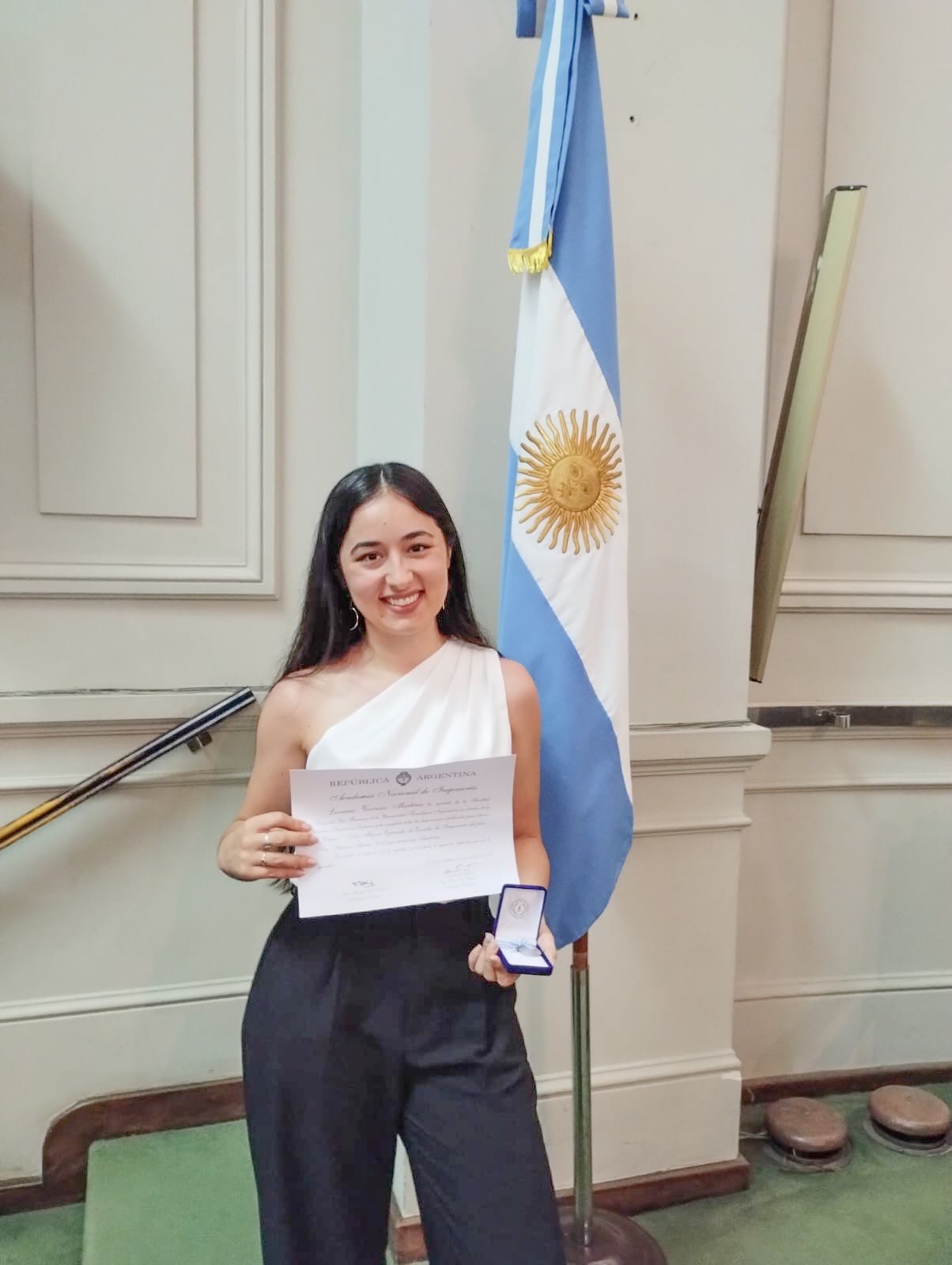 La Ing. Lucrecia Martínez, graduada de nuestra Facultad Regional San Francisco, fue distinguida este viernes 5 de diciembre por la Academia Nacional de Ingeniería con el premio “Ing. Isidoro Marín”, que reconoce anualmente a las y los mejores graduados de carreras de Ingeniería de universidades de todo el país.