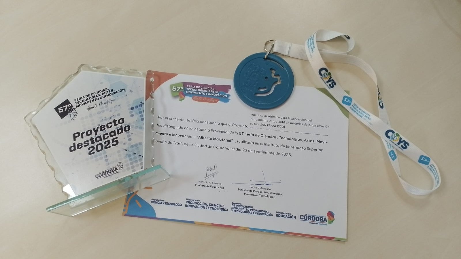 El segundo proyecto, “Analítica académica para la predicción del rendimiento estudiantil en materias de programación”, fue desarrollado por el Mg. Ing. Claudio Carrizo y recibió una de las seis distinciones como “Proyecto destacado” durante el acto de cierre del evento. La selección se anunció sobre el final de la jornada, marcando un reconocimiento especial entre las iniciativas universitarias evaluadas.