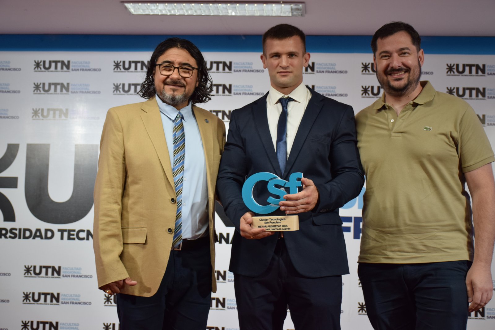 Durante la ceremonia, también se entregaron distinciones a estudiantes destacados por su desempeño académico. El Ing. Santiago Gastón Mercante recibió el reconocimiento al mejor promedio de la 37° Colación de Grado con 9.58. También fueron homenajeados la Ing. Lucrecia Martínez, mejor promedio de Ingeniería Química a nivel nacional, y el Ing. Federico José Chiessa, premiado por el COPIME en la especialidad Electromecánica.