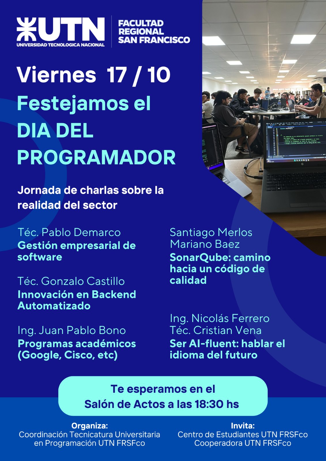 La propuesta es organizada por la Coordinación de la Tecnicatura Universitaria en Programación de UTN San Francisco con el apoyo del Centro de Estudiantes Tecnológicos y la Asociación Cooperadora.