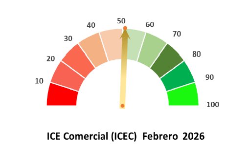 Este indicador mide el nivel de confianza y expectativas de los comerciantes sobre la situación económica y su actividad. El número de febrero de este año ubica al indicador apenas por encima del nivel de neutralidad (50), lo que, de acuerdo al informe, refleja un escenario de expectativas moderadas dentro del sector comercial local. En términos generales, indica que predominan percepciones cautelosas.