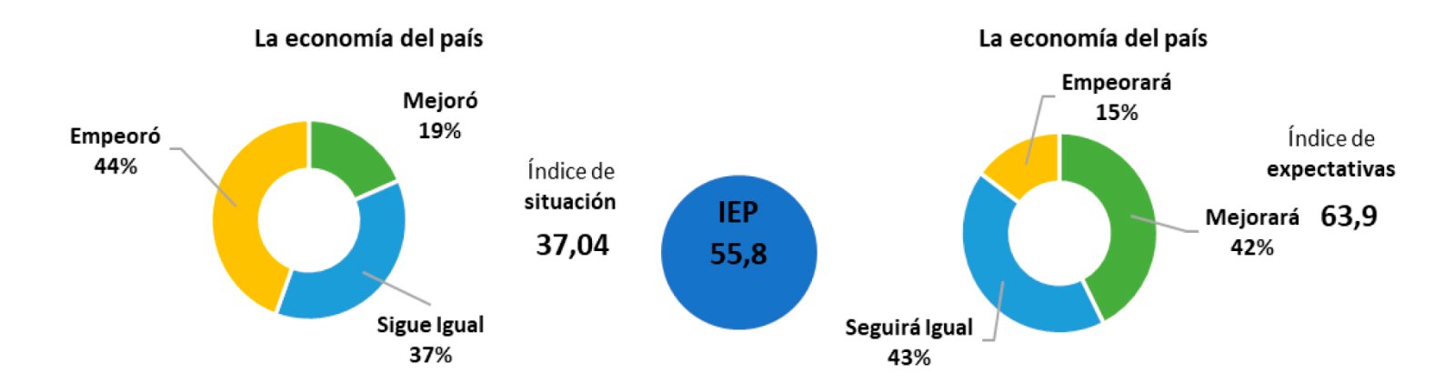 Por su parte, el índice de evaluación del país se ubicó en 55,8 puntos, el valor más alto del relevamiento. Desde la perspectiva empresarial, la economía nacional es vista como estable, con expectativas mayormente neutras. Al referirse a la economía del país, para un 44% empeoró, sigue igual para un 37%, y mejoró para el 19% restante. En este ítem, las expectativas muestran que un 43% espera que la situación permanezca igual, un 42% opina que mejorará, y para un 15% empeorará.