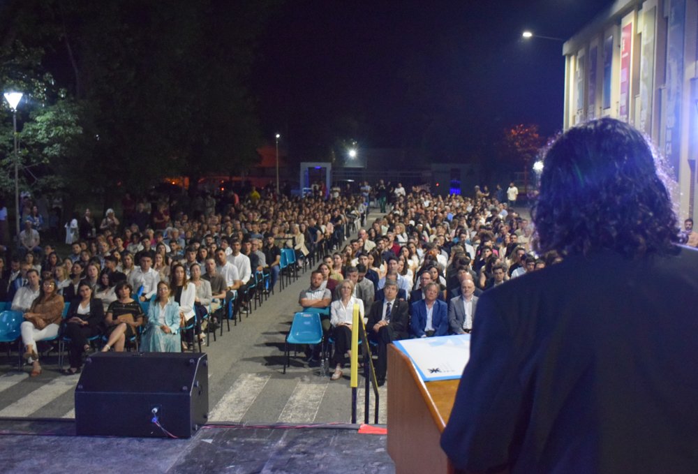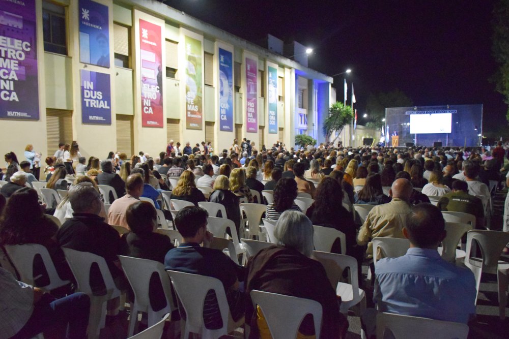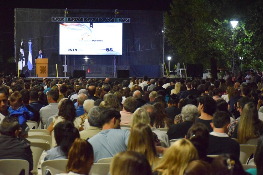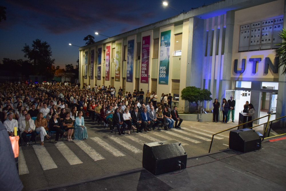 Anoche, viernes 14 de noviembre, la comunidad educativa de UTN San Francisco celebró un nuevo acto de colación, en el que se entregaron títulos de grado, pregrado, posgrado y de diplomaturas a más de 150 graduados y graduadas, y contó con la presencia de más de 600 personas que colmaron la explanada ubicada frente al edificio principal de nuestra Facultad.