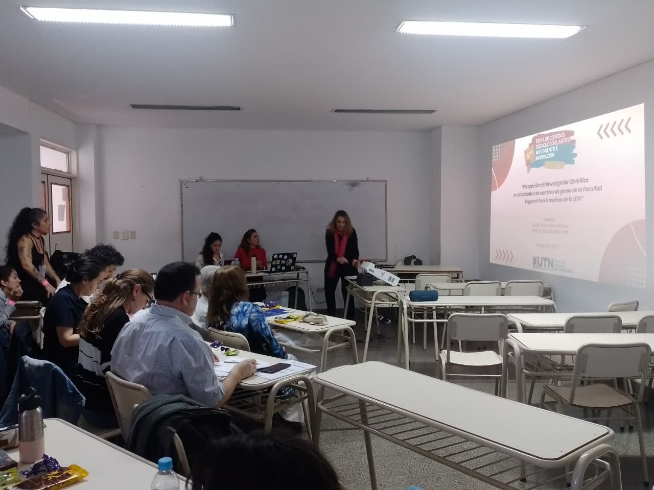 Uno de los trabajos presentados fue “Percepción del investigador científico en estudiantes de carreras de grado de la Facultad Regional San Francisco de la UTN”, realizado por la Lic. Vanina Fraire y la Lic. Claudia Mercol.